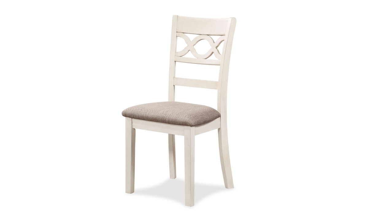 The Cori Dining Collection has the perfect size, design and color to fit your needs for a quality built, stylish dining set. All table and chair legs are constructed of solid rubberwood for strength and durability, while table tops feature beautiful Mindi wood veneers enhanced with multi-step finishes. Dining table tops have a fancy face, reverse diamond pattern veneers that are a stand out in any home. Update your design style with our two tone Bisque/Brown for a farmhouse feel. All dining chairs feature upholstered cushions and a sophisticated interlocking chair back design that makes a unique statement in your dining room or kitchen nook.
