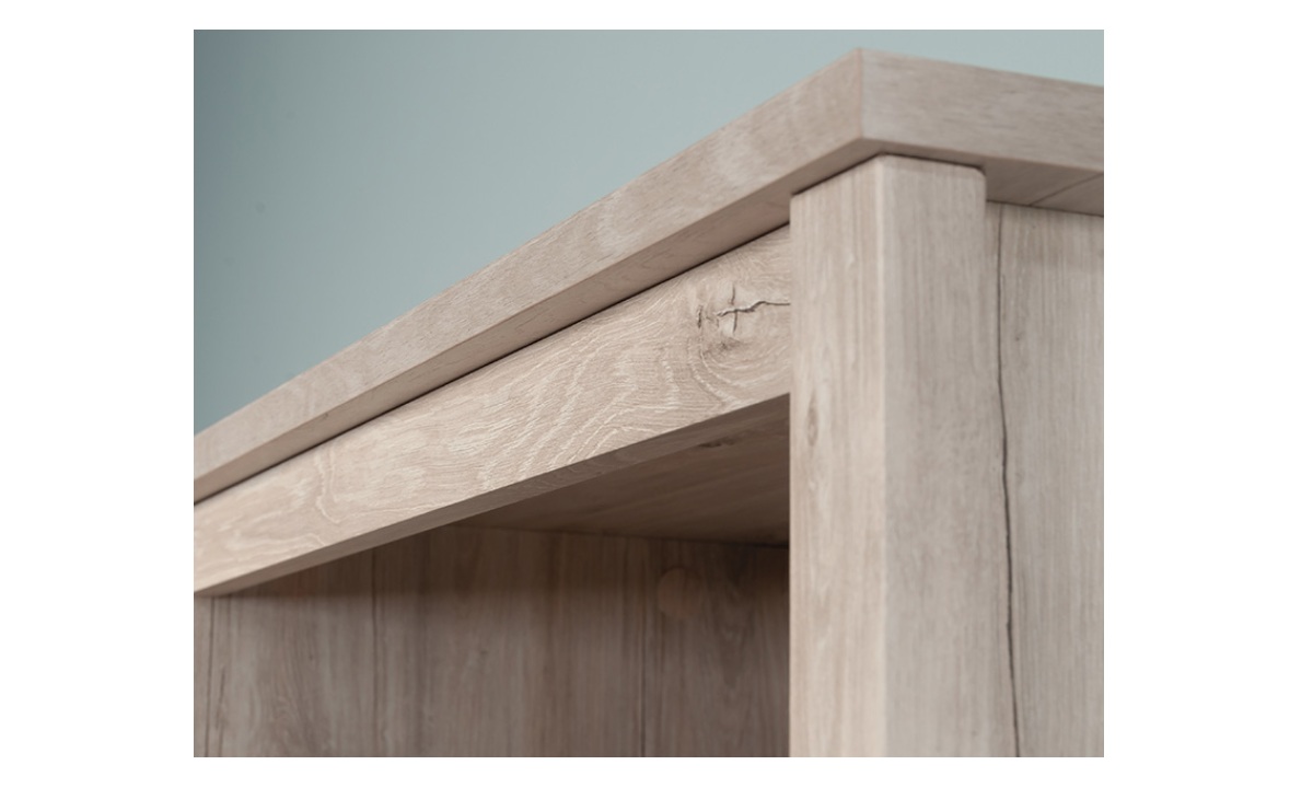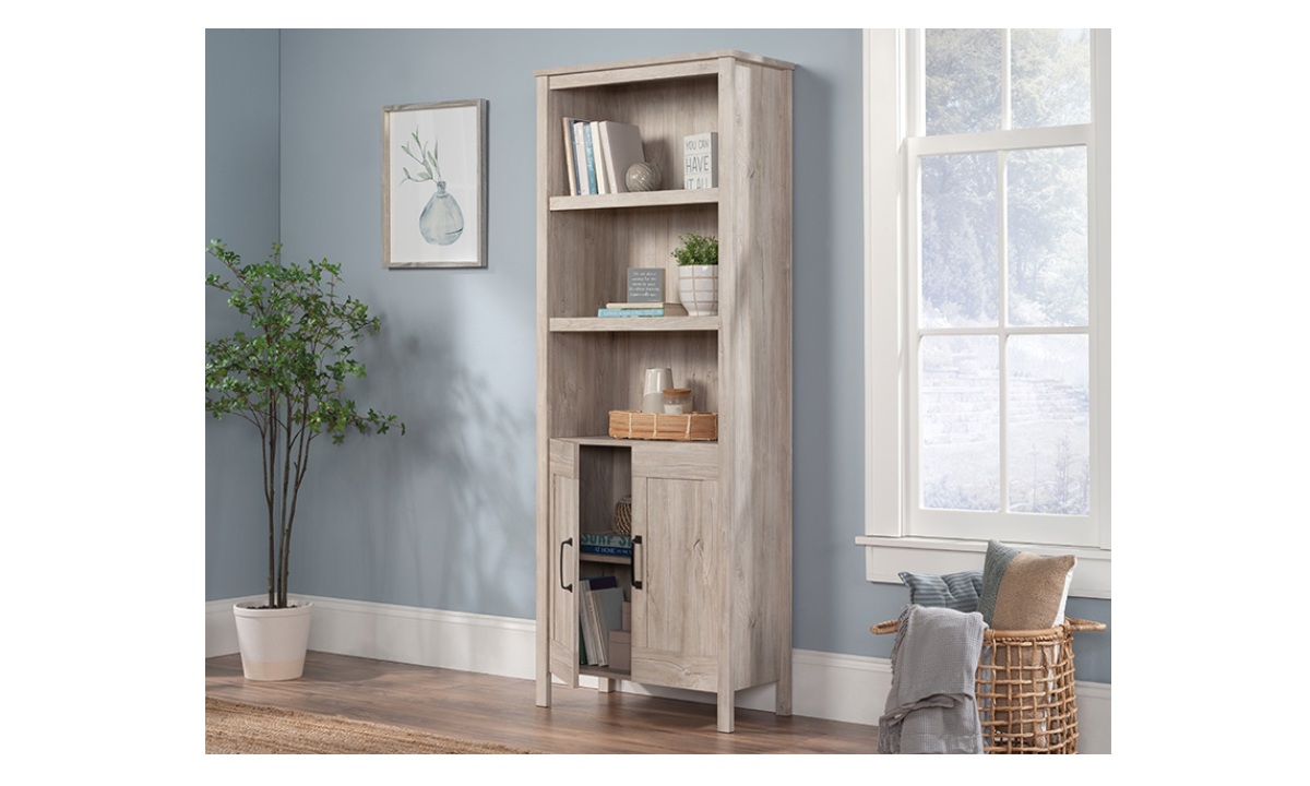 The 5-shelf bookcase from the Sauder Select collection is the perfect addition to any home seeking a touch of rustic charm. This versatile bookcase with doors combines functionality with a timeless design, featuring three adjustable shelves that can be tailored to accommodate your personal collections of all shapes and sizes. The white-washed, neutral, Chalk Oak® finish adds a touch of distressed elegance, evoking a vintage farmhouse aesthetic. There is more to this cottage bookcase than meets the eye, as concealed behind its doors lies hidden storage with an adjustable shelf, providing a secret space to tuck away clutter or store seasonal items. Whether you’re showcasing your favorite novels, displaying your prized collections, or organizing office supplies, this display bookcase caters to all your needs. This farmhouse bookcase from Sauder offers a blend of country style with distinct practicality that will seamlessly integrate into any living space and effortlessly merge the past and present.