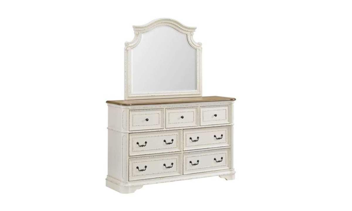 • (6 piece set includes headboard, footboard, rails, triple dresser, mirror and one nightstand.  Chest sold separately.)