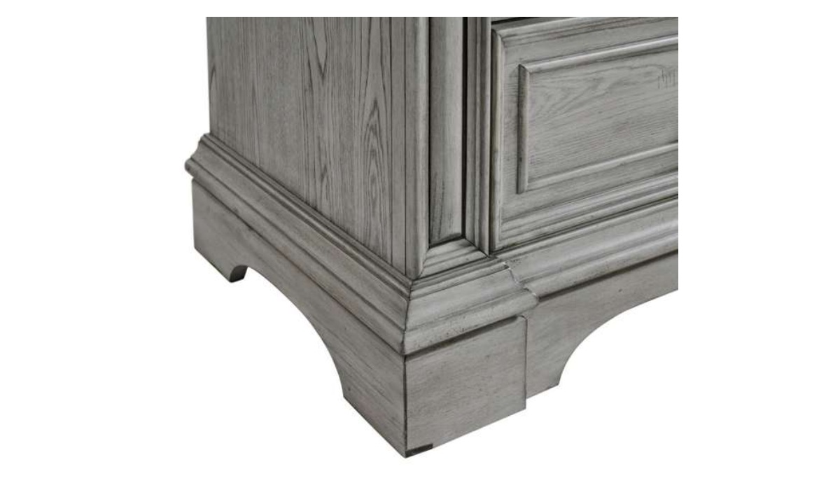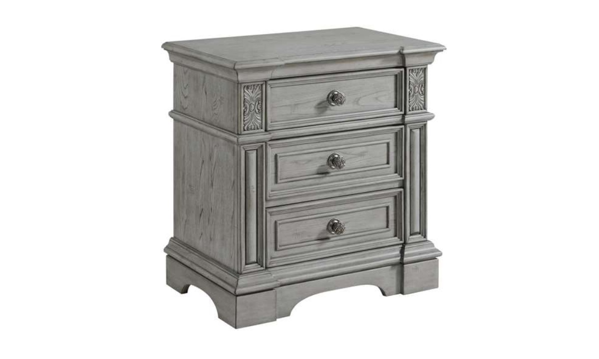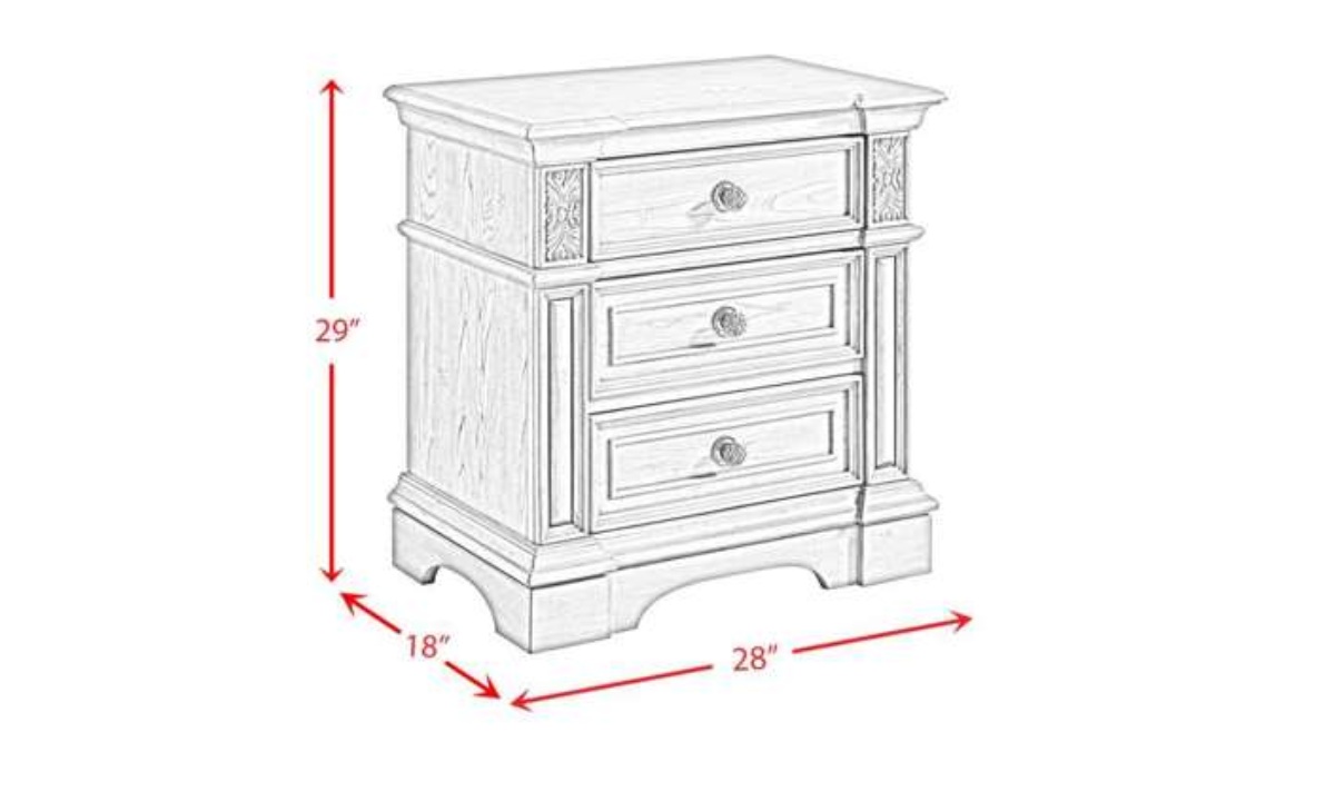 The Glenmore Nightstand offers the perfect blend of classic charm and modern functionality. Its three-drawer design provides ample storage, while the rich wood grain wire brushed finish adds a touch of rustic elegance. Crown molding and framed drawer panels enhance the traditional aesthetic, complemented by decorative knobs with intricate detailing. The raised pedestal feet ensure stability and style, making it a versatile addition to both traditional and transitional bedroom settings. The cedar-lined bottom drawers keep your belongings fresh, while the built-in USB ports offer convenient charging for your devices. Elevate your bedroom with the timeless beauty of the Glenmore Nightstand.