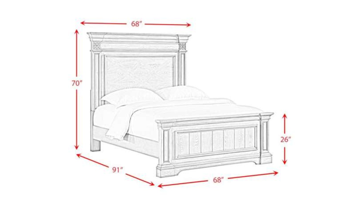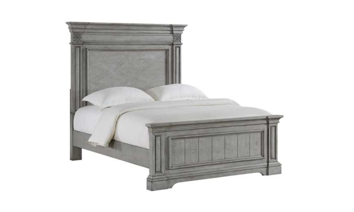 Indulge in the elegance of the Glenmore Queen Panel Bed, where classic charm meets timeless design. Crafted with a rich wood grain wire-brushed finish, this stunning piece showcases a stately panel headboard and footboard, accented with intricate decorative and crown molding for a touch of traditional sophistication. The clean, rectangular lines create a versatile silhouette, effortlessly blending into both traditional and transitional bedroom settings. Resting on raised pedestal feet, the bed exudes stability and refined style, offering a luxurious centerpiece that transforms your bedroom into a sanctuary of elegance and comfort. Make every night a royal retreat with Glenmore.