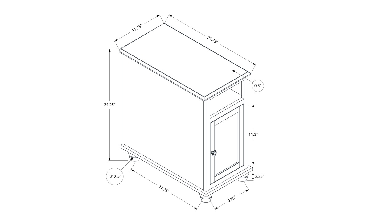 If you want an accent table that combines both practicality and style, then take a look at this 24 inch high side table with a warm antique white and espresso brown veneer finish. This fashionable side accent table with an easy to clean top is perfect to set next to a sofa or chair in your living room, or add a reading lamp on top and place in your bedroom as a charming nightstand. This traditionally designed, space saving end table has plenty of storage options that include an open shelf to tuck away a book or a small basket, and a built-in cabinet accented with elegant metal knob in an antique bronze finish, great for storing other essential items. Durably designed in wood materials and easy to assemble with full illustrated instructions and hardware, you will enjoy this narrow side table in your home for years to come.