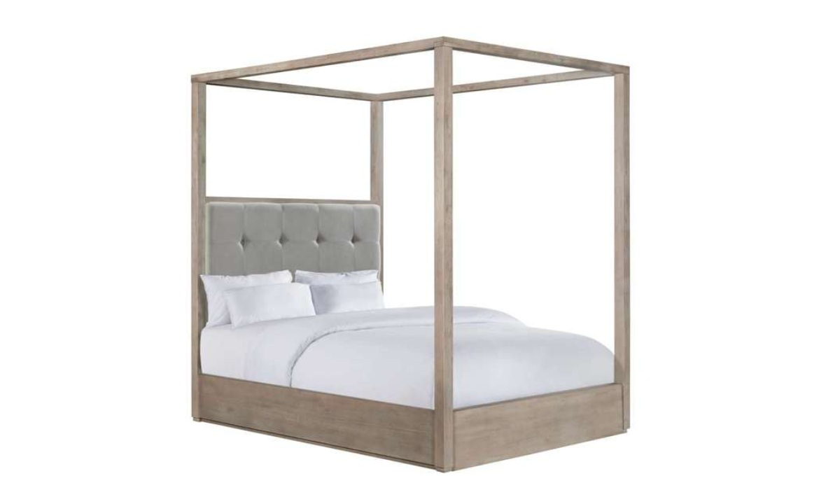 Create a peaceful and elegant retreat with the Arcadia Queen Canopy Bed Grey. This modern bed features a grey accent upholstered headboard, exuding style and sophistication. The button tufting adds a touch of luxury, while the canopy frame provides an airy and ethereal feel to your bedroom decor. With its sleek design and comfortable construction, this bed brings both functionality and beauty to any space. Experience the ultimate relaxation in this stunning centerpiece that seamlessly blends into any modern aesthetic.