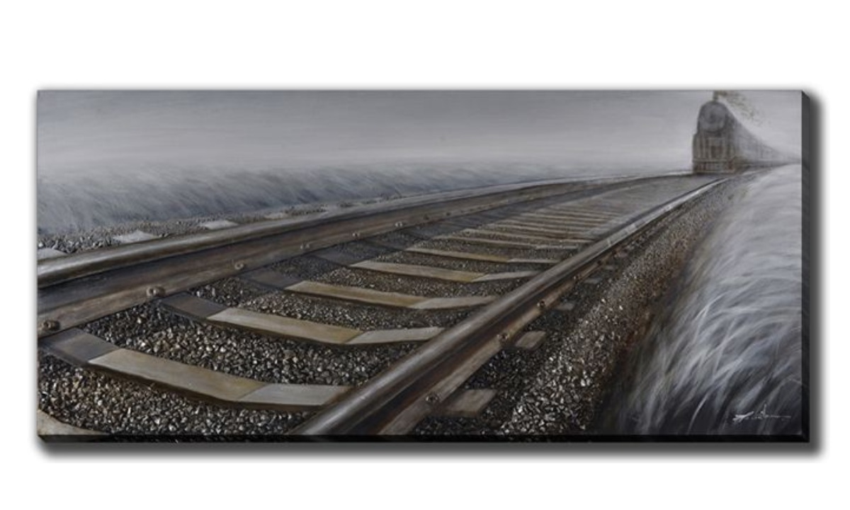 3D oil painting on gallery wrapped canvas with actual metal and stone embellishments