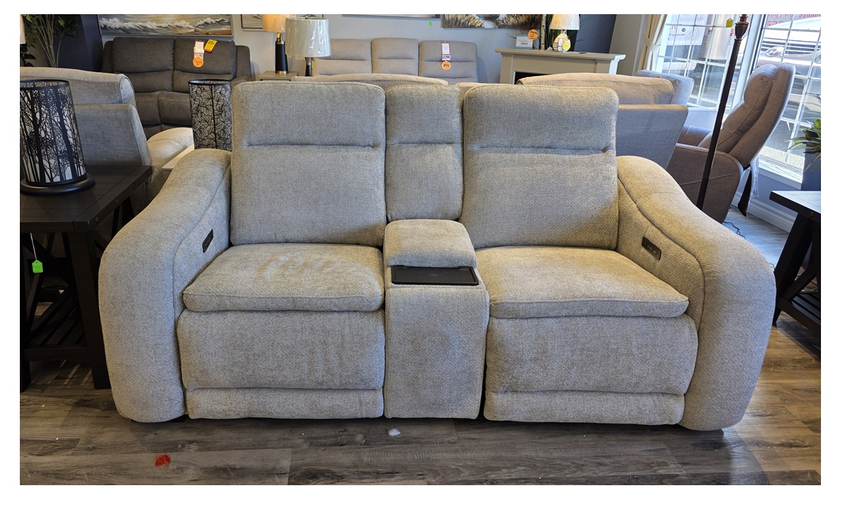 Atlas sofas offer the look, feel and easy care of a fabric, crafted through extensive research and rigorously tested to ensure the highest quality. Each piece features sinuous springs in the seats to prevent sagging, 2.0 foam with dacron and a hardwood frame. Power headrest and footrest on all three pieces.  Sofa has a drop down centre table with lights.  Loveseat has a tilt out console, wireless charger and a bluetooth speaker.