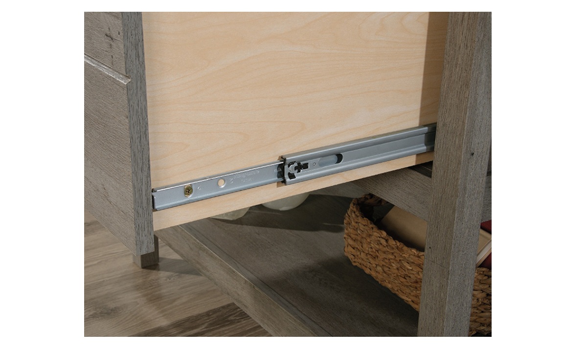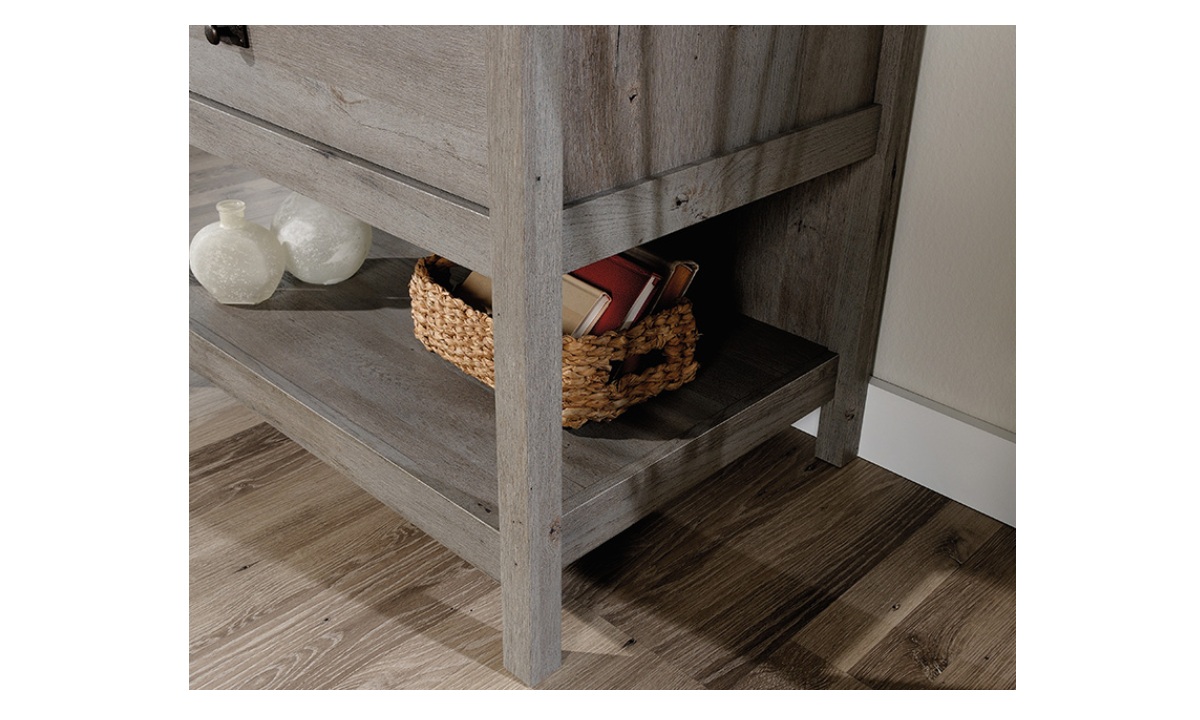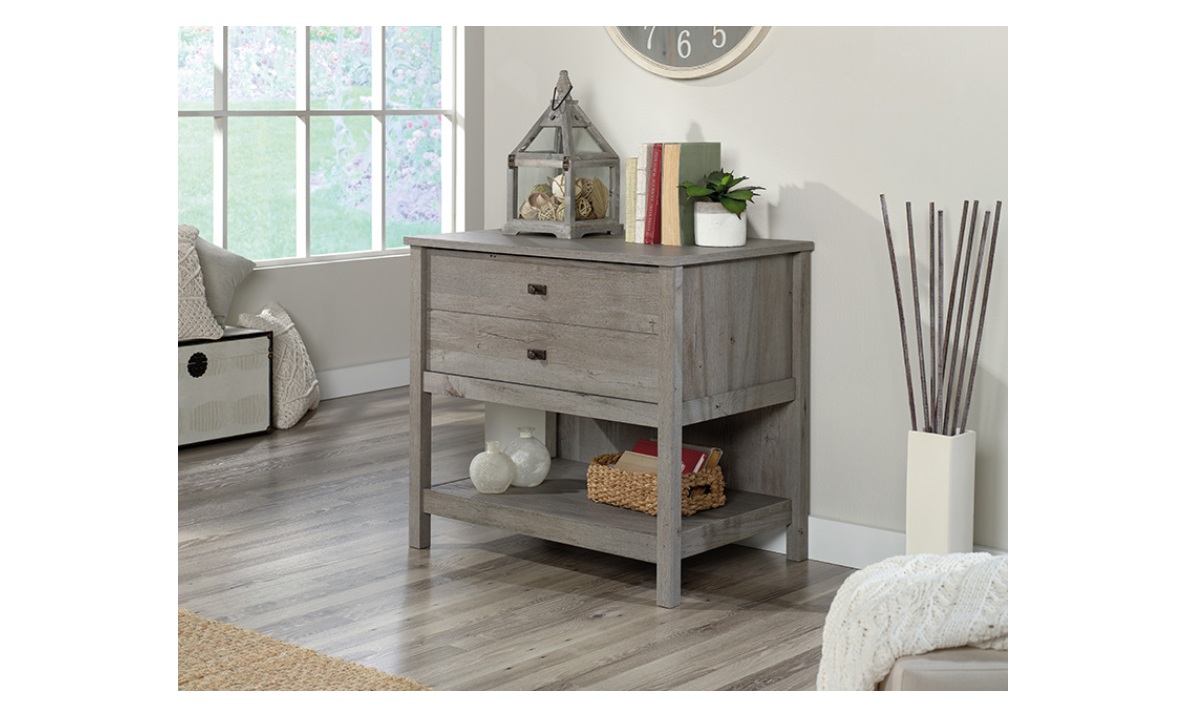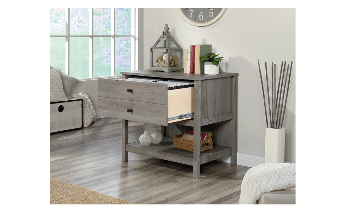When your files are begging for a new home, upgrade them to this stylish and functional lateral file cabinet from the Cottage Road® collection. This 1 drawer lateral file cabinet features full extension slides that hold letter, legal, or European size hanging files. A convenient open shelf beneath the file drawer of this wood lateral file cabinet is ideal for additional storage of home essentials like books, binders or organizing bins. A spacious top surface allows you to decorate your single drawer file cabinet with home décor, photos of your family, or a trendy accent lamp. Or it makes a great spot to hold your printer. We know you want your documents to be organized as quickly as possible, that’s why this file cabinet with shelf features quick and easy assembly with patented T-lock drawer system and patented slide-on moldings. Finished in Mystic Oak®, this stylish home file cabinet blends perfectly into your home office while adding a refreshing touch.