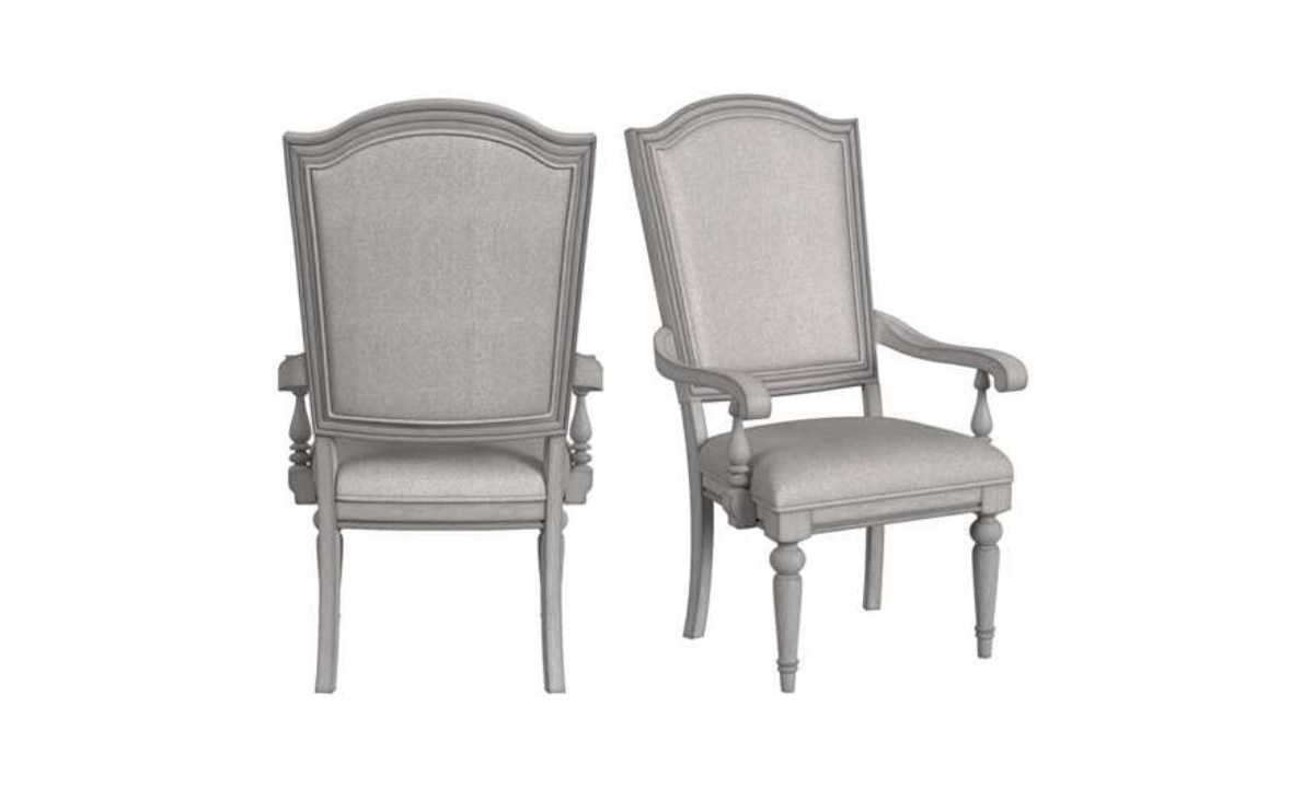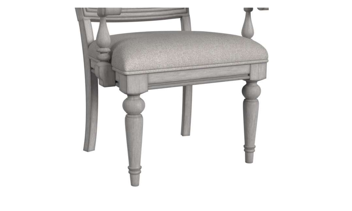 The elegant Glenmore Dining Chairs embody classic grace and timeless charm, offering a refined addition to any dining space. Crafted in an aged grey finish, each chair is beautifully detailed with delicate woodwork and gracefully turned legs, bringing a sense of heritage to your home. The upholstered back and seat in soft, light fabric provide plush comfort, inviting guests to linger and repose. With gently curved arms and a silhouette reminiscent of traditional designs, the Glenmore Dining Chairs effortlessly blend sophistication with comfort, creating an inviting and distinguished atmosphere for your most cherished gatherings.