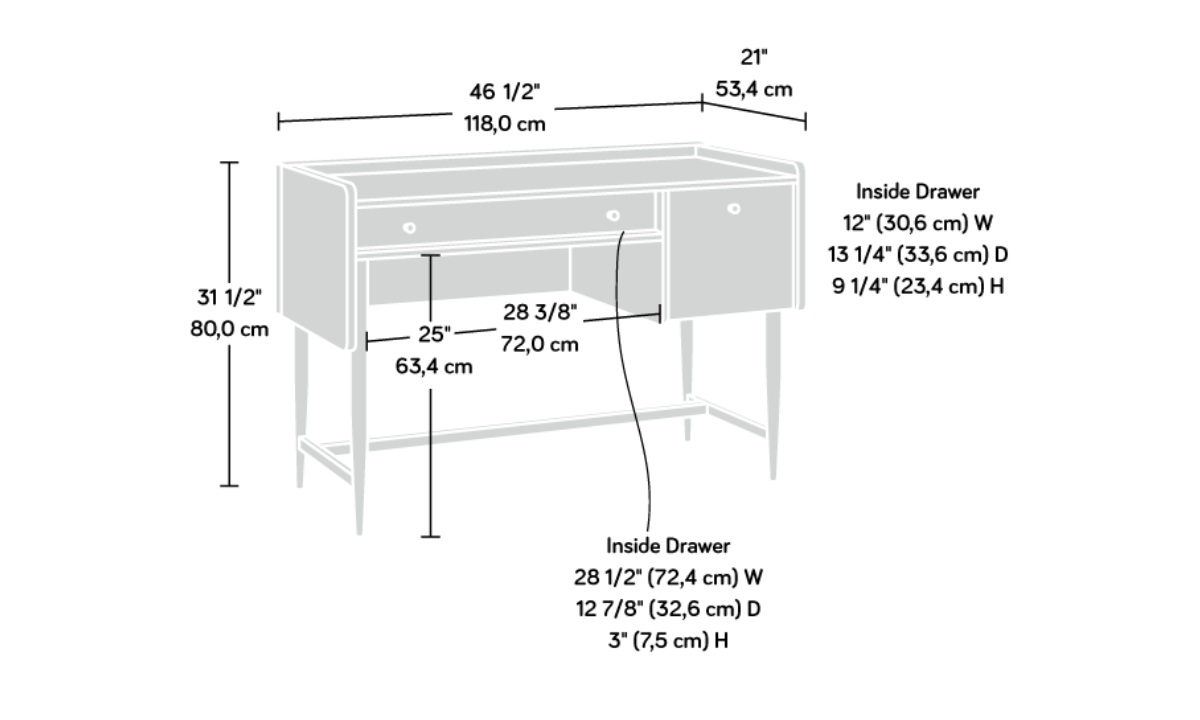 Dimensions 46 1/2″W x 21″D x 31 1/2″H