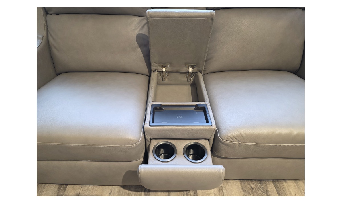 Iris loveseats offer the look and feel of rich leather with the long lasting durability and easy care. Each piece is crafted through extensive research and rigorously tested to ensure the highest quality. Features include sinuous springs in the seats to prevent sagging, 2.0 foam with dacron and a hardwood frame. Power headrest and footrest on all pieces. Wireless charger on tilt console in loveseat.