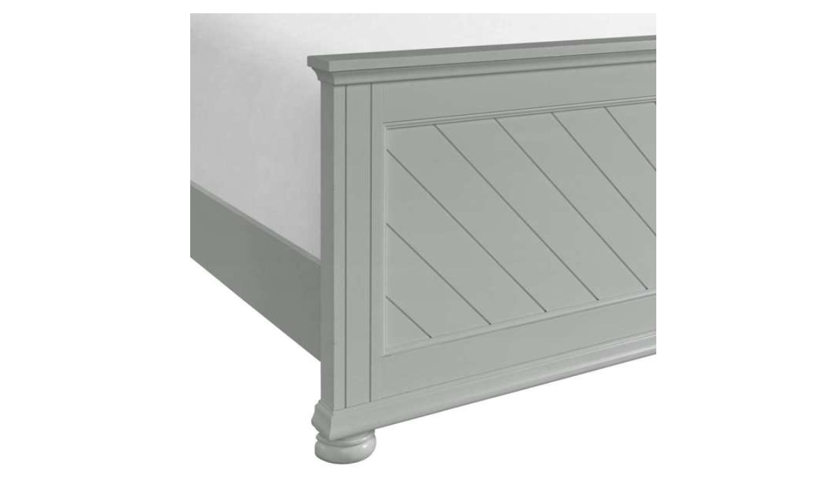 Upgrade your bedroom with the Kona Full Panel Bed featuring a stylish chevron pattern detail on the headboard and footboard. The curved headboard design adds a touch of elegance to your room while the bun feet provide stability and style. With four slats and four slat supports, this bed offers durable support for a restful night’s sleep. Add a touch of traditional flair to your bedroom with the Kona bedroom collection.