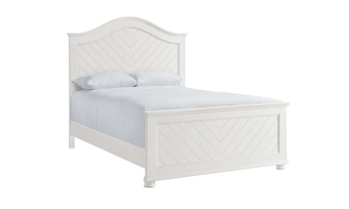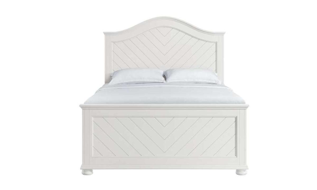 Upgrade your bedroom with the Kona Queen Panel Bed featuring a stylish chevron pattern detail on the headboard and footboard. The curved headboard design adds a touch of elegance to your room while the bun feet provide stability and style. With four slats and four slat supports, this bed offers durable support for a restful night’s sleep. Add a touch of traditional flair to your bedroom with the Kona bedroom collection.