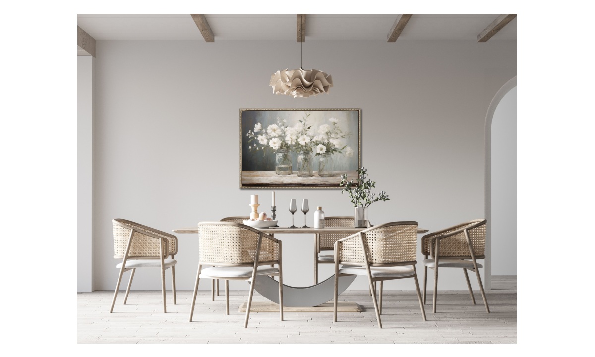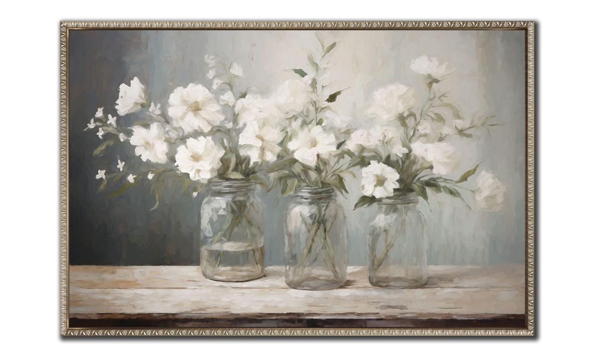 Hand embellished canvas art in a Vintage Champagne Floating Frame
