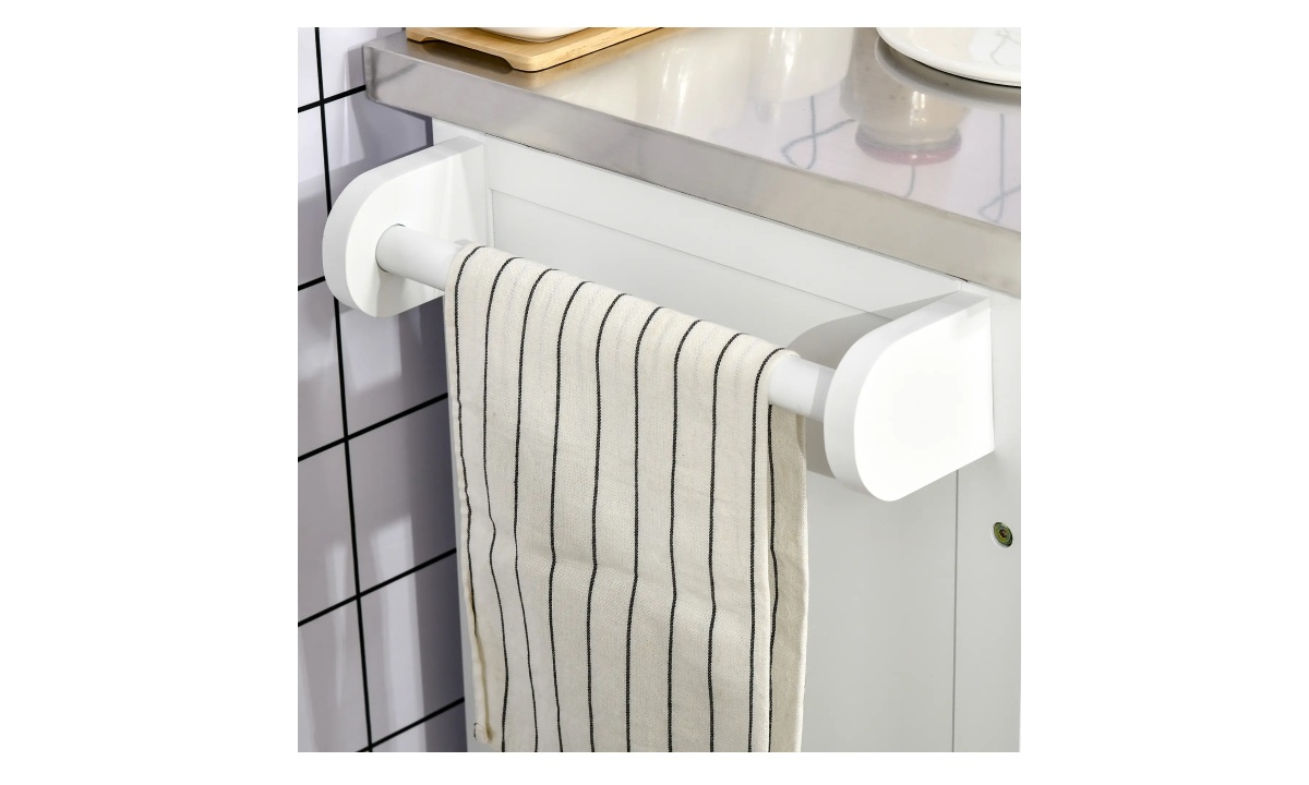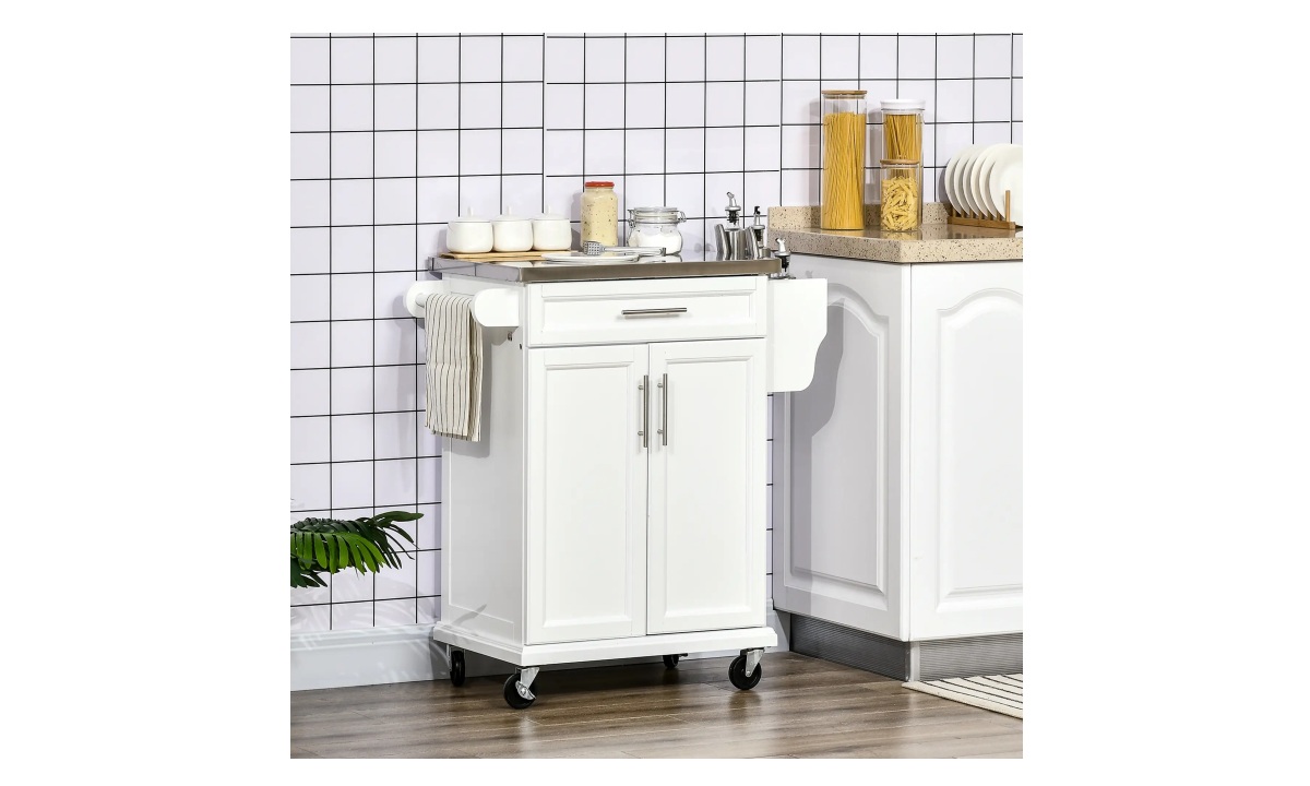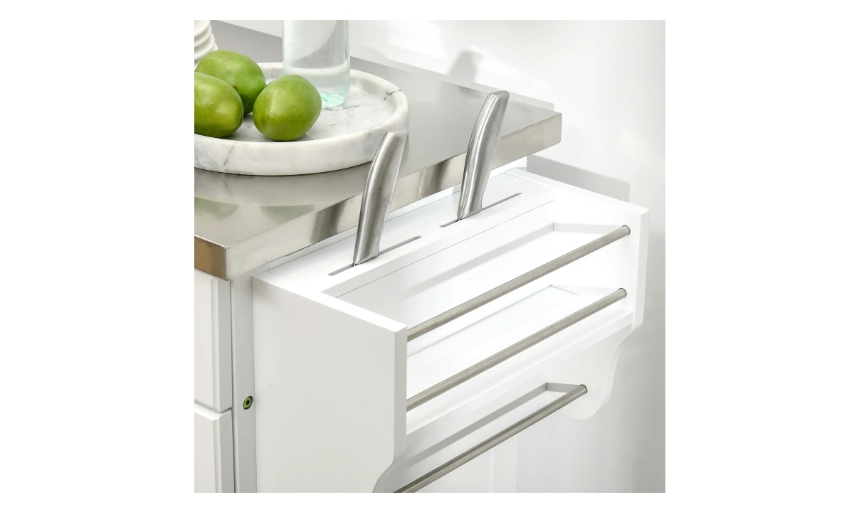 Rolling Kitchen Cart w/Stainless Steel – White