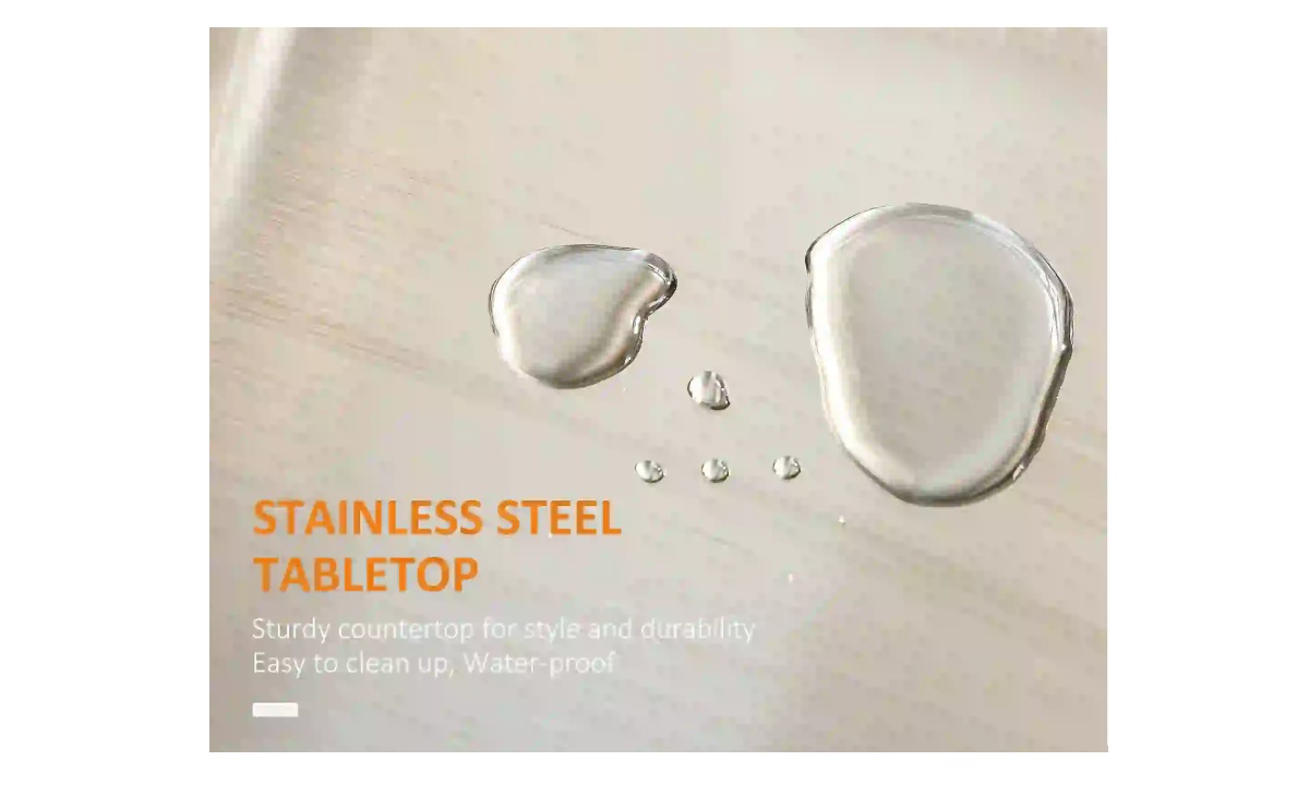 - Spacious Stainless Steel Countertop: Featuring a 24″ x 18″ durable stainless steel top, this kitchen island cart provides ample space for prepping, serving, and storing. The 1.2″ (3cm) thickness makes it perfect for baking biscuits & cookies. Maintenance Tip: Avoid prolonged water exposure, dry immediately and clean with stainless cleaner regularly.