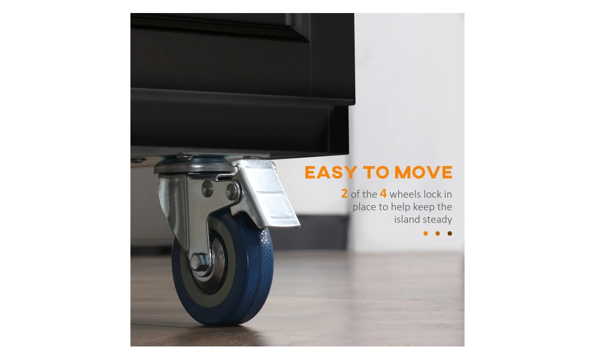 • Easy to Move Around: The rolling design on wheels lets you easily move the kitchen island cart around the kitchen or your home. 2 of the 4 wheels lock in place to help keep the island steady.