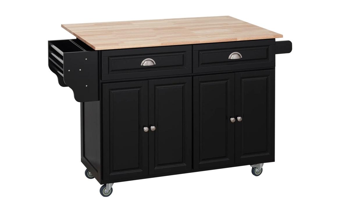 Rolling Kitchen Island – Black w/Rubberwood Top