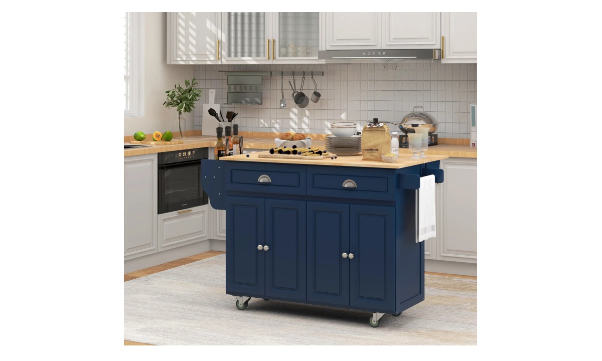 Rolling Kitchen Island – Navy Blue w/Rubberwood Top