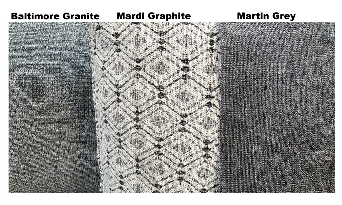 • Accent toss pillows – Mardi Graphite/Martin Grey