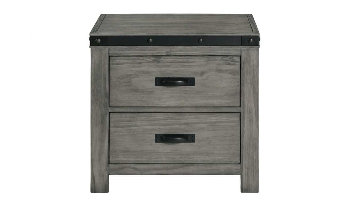 The Wade 2-Drawer Nightstand is the ultimate piece for your home! This bedroom staple comes with two, spacious drawers; perfect for easily keeping all of your bedside belongings neatly stored away. The bottom drawer features a dust proofing layer to help protect your belongings. The drawer pulls and trim along the top of the nightstand are both metal with a black finish. Along the trim on the nightstand are decorative bolts, adding a little extra flair. This nightstand is finished in a neutral gray, making it easy to pair with any existing decor or to find an excuse to completely redo your bedroom. Please note wood grains vary piece by piece and will not look exactly like the picture.