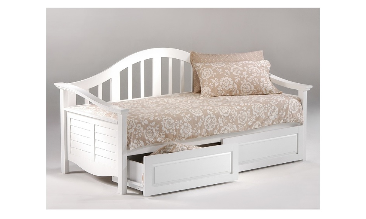 Our Seagull Daybed, fresh and breezy, soars above it all. Beautiful in white, the Seagull works as well in the kids room as it does in the sun room. Comes in a lustrous white finish and is compatible with rolling storage drawers or a trundle (each sold separately). Made of all wood, from the arms and back panel to the platform of the bed. Comes with a limited 10 year warranty.